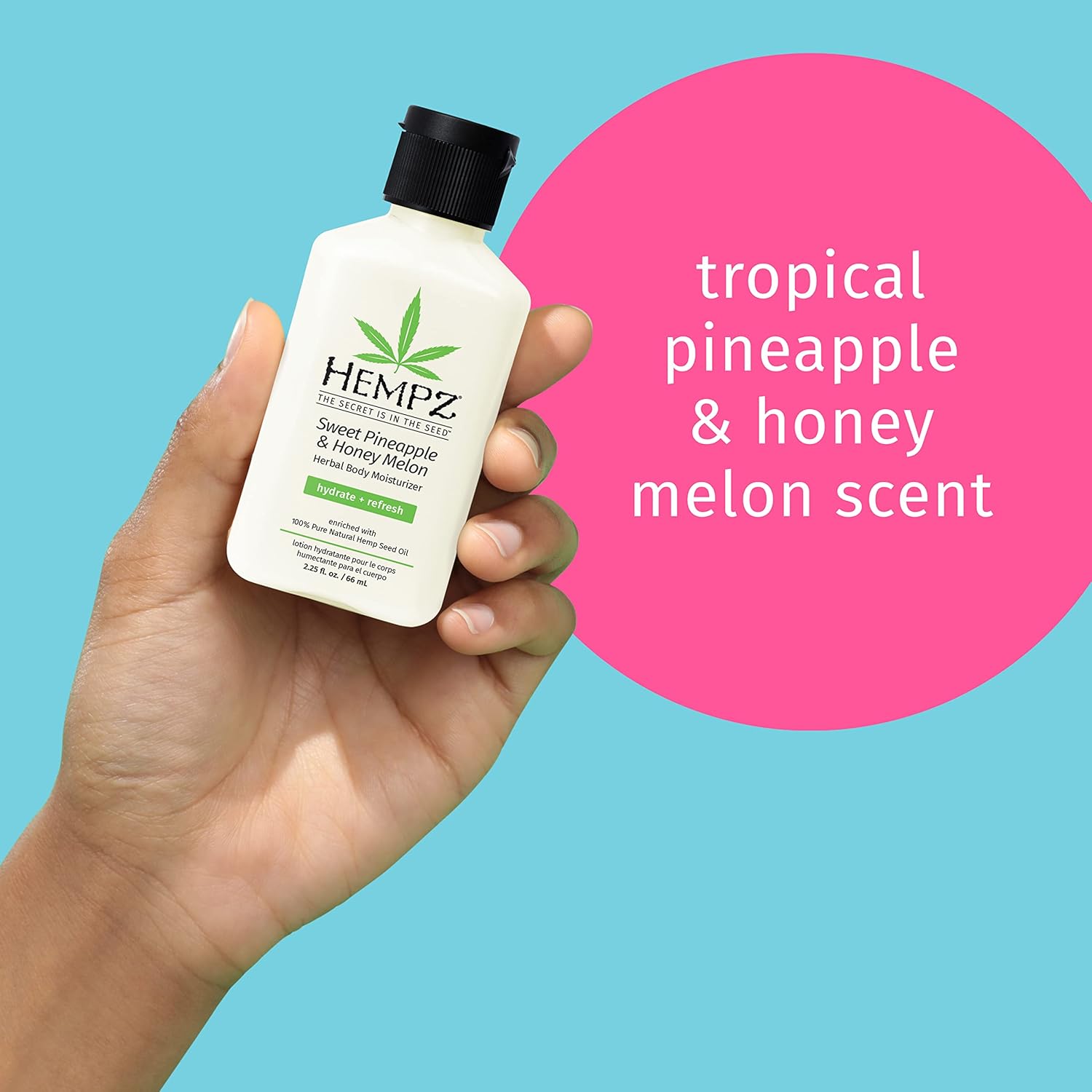 Hempz Sweet Pineapple & Honey Melon Moisturizing Skin Lotion, Hemp Seed Herbal Body Moisturizer with Jojoba, Natural Extracts, Vitamins A and E, 2.25 oz