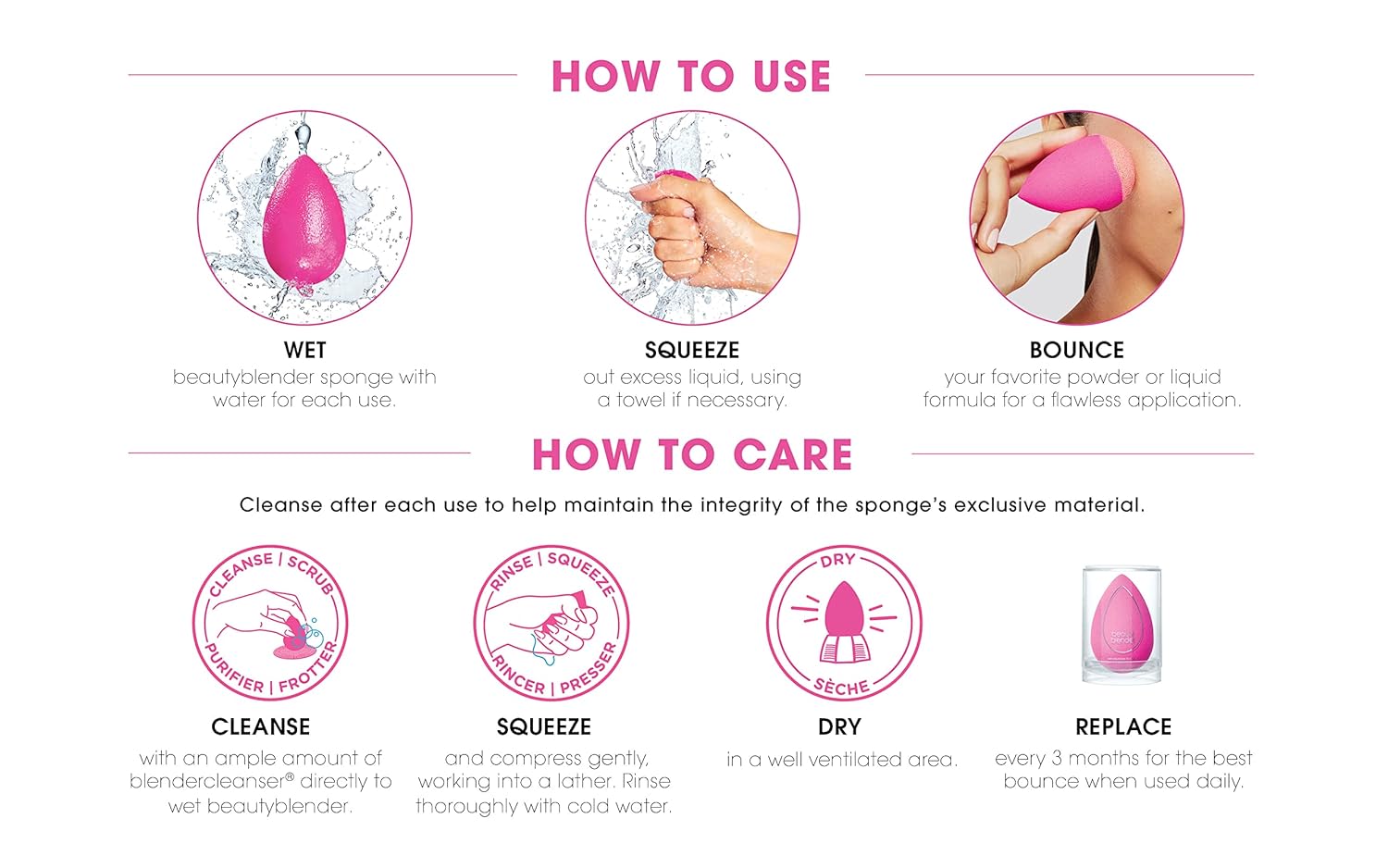 - Directions: This liquid cleanser is super easy to use. all you need to do is wet your beautyblender sponge or brush, swirl the cleanser onto stains to create a lather, then rinse and squeeze to remove excess cleanser and water. once completely dry you can use your applicator again.