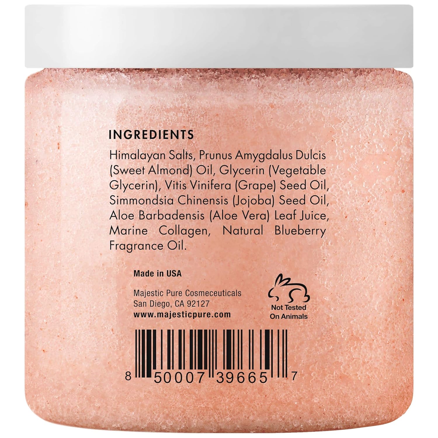 - Beneficial Scrub β Majestic Pure Himalayan Salt Exfoliating Body Scrub is formulated with skin loving ingredients including Marine Collagen, Sweet Almond Oil various nutrients for their benefits on skin; Pure Salt Scrub Detoxifies & Hydrates skin; It can be used by Men & Women