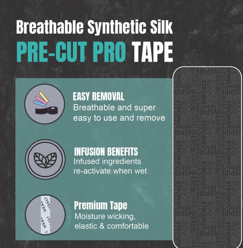 - PRODUCT DETAILS AND PERFORMANCE: 20 precut strips per roll of pro kinesiology tape. Strip Size (Width x Length) - 5cm x 25cm 2" x 10"; Product Type: Precut. Heali PRO Kinesiology Tape is infused with Magnesium and Menthol.