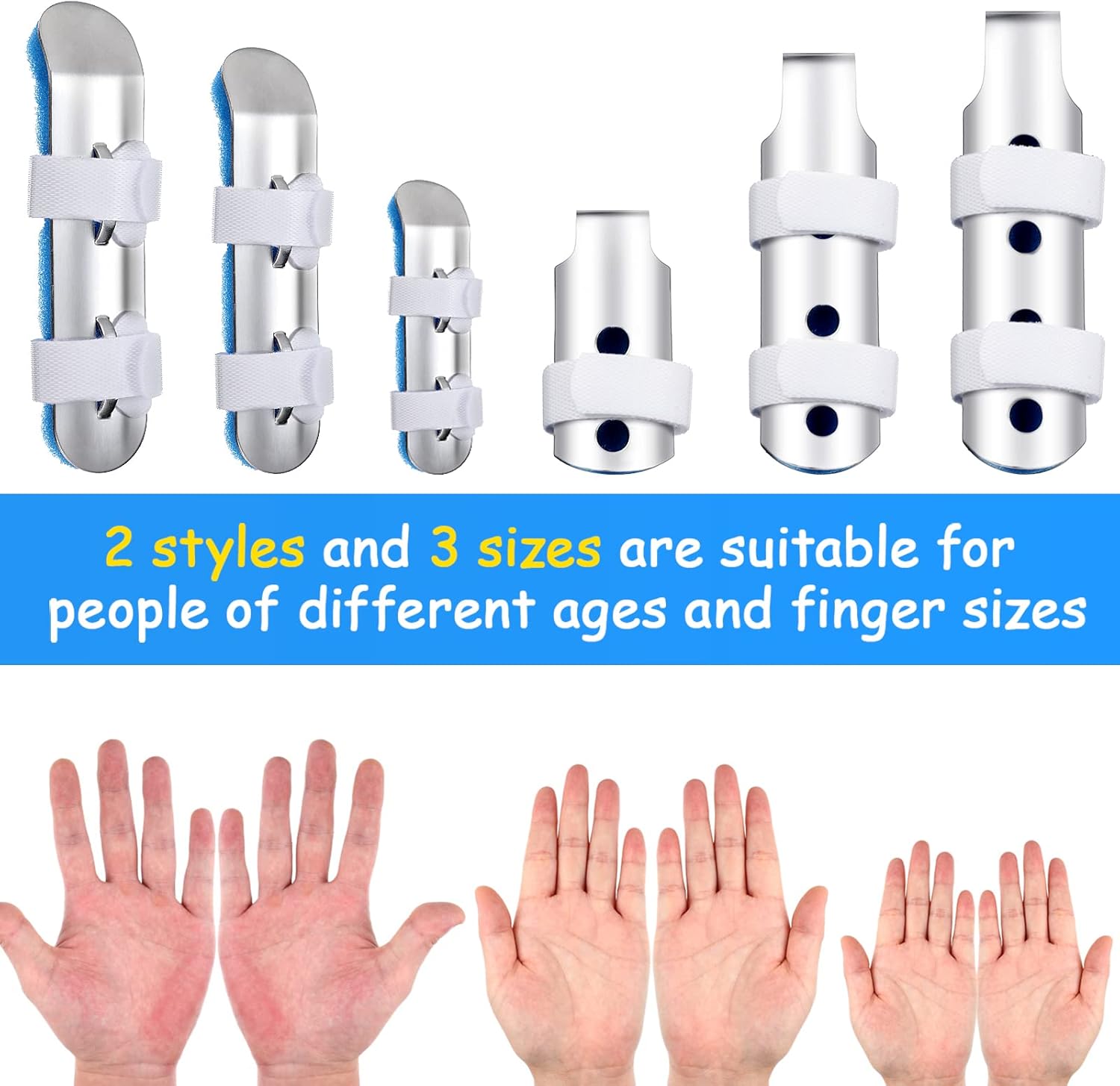 - Package includes: the package contains 6 pieces of metal finger splints in 2 styles with simple color, quantity and different sizes for you to choose; Enough quantity and various sizes to meet most of your needs and replacement