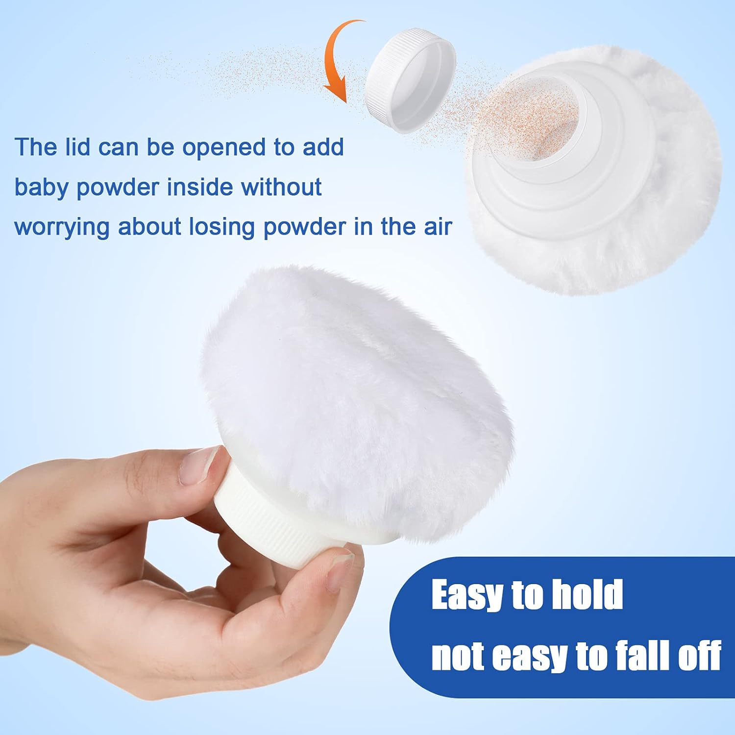 - Easy to use: with the talcum powder container, you can pour certain amount of talcum powder or baby powder in it and gently apply on the skin with the fluffy puff; After using, the puff can be placed in the powder case and covered well