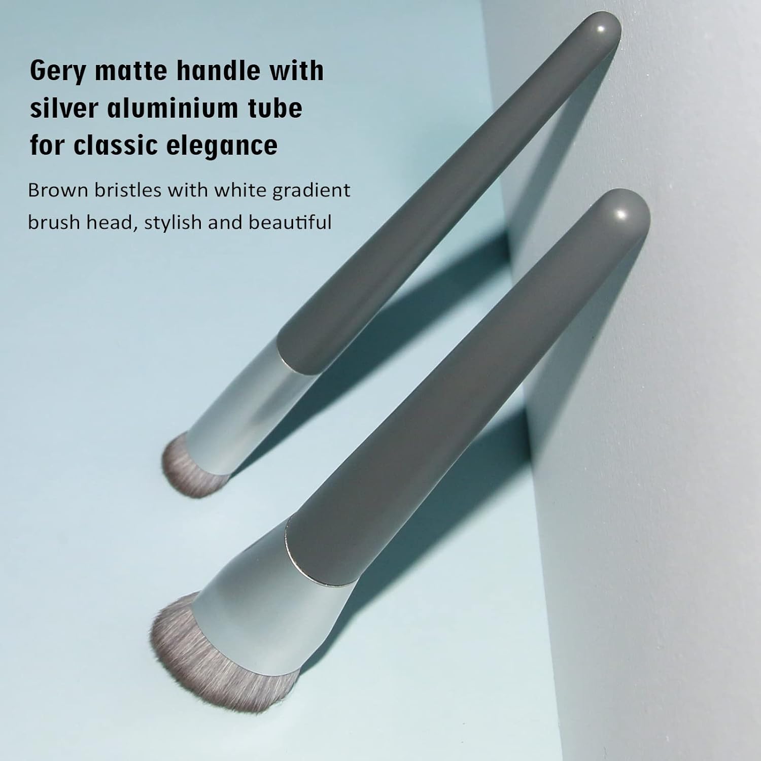 - π[Exquisite Craftsmanship and Design ]: Brochas de maquillaje profesional is made of synthetic bristles and precision-cut brush heads, which is very soft, dense, firm and ultra soft. Smoky gray wooden frosted brush texture handle with silver matte aluminum tube, low-key luxury, stylish and beautiful, easy to use. You will grow glowing with our makeup brush.