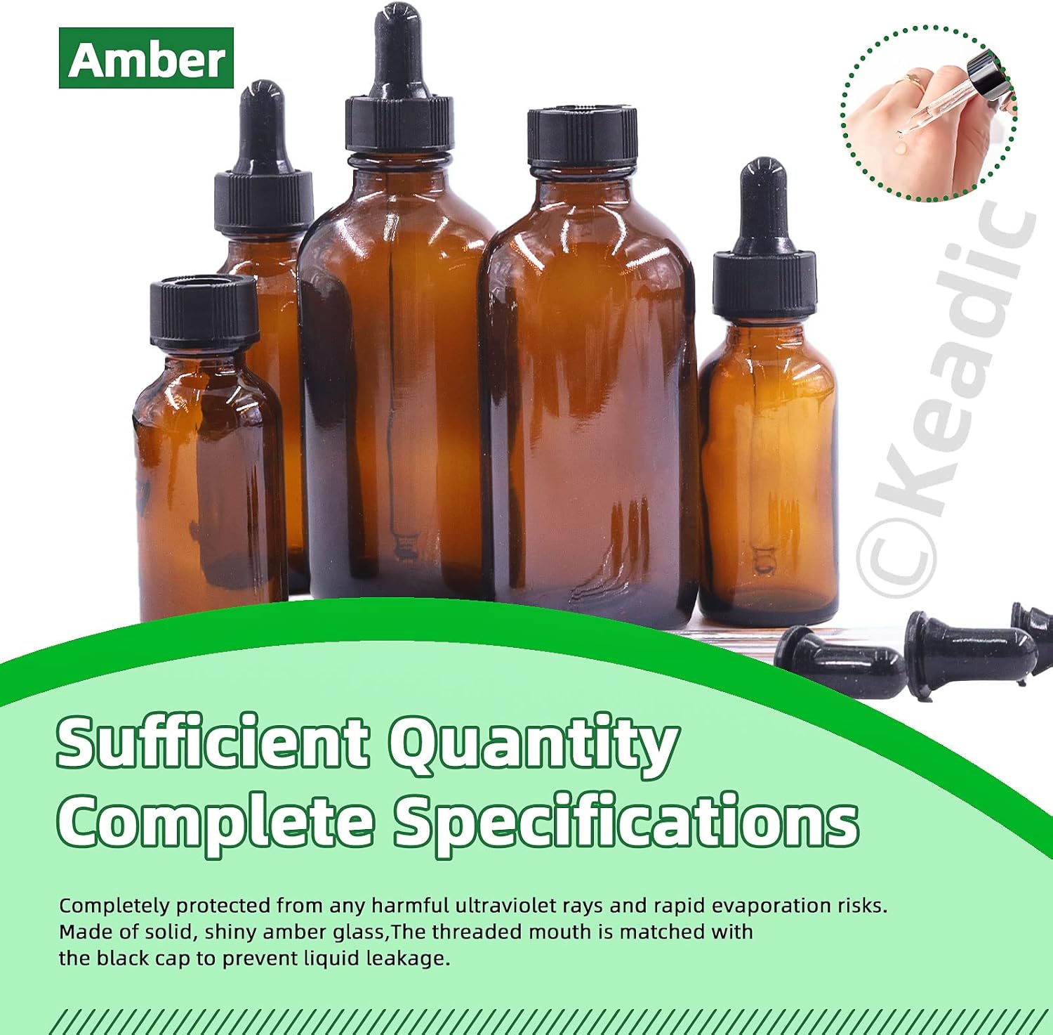 Keadic 24 Pack Dropper Bottle, 1 Oz 2 Oz 4 Oz Amber Glass Eye Dropper Bottle Amber Glass Tincture Bottles for Essential Oils Perfumes Liquids