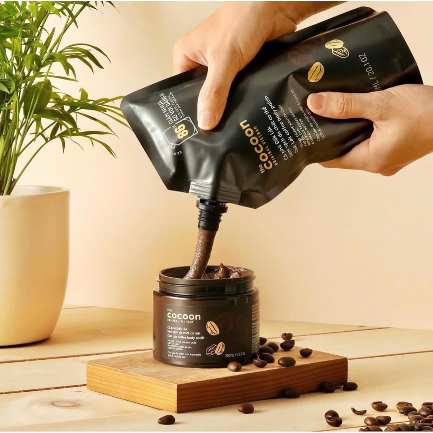 Cocoon Dak Lak Coffee Body Polish with Coconut & Shea Butter. 100% Vegan Exfoliating Scrub for Smooth & Glowing Skins | Reduce Stretch Marks, Acne & Cellulite | Gift for Coffee Lovers (20.29 fl oz)