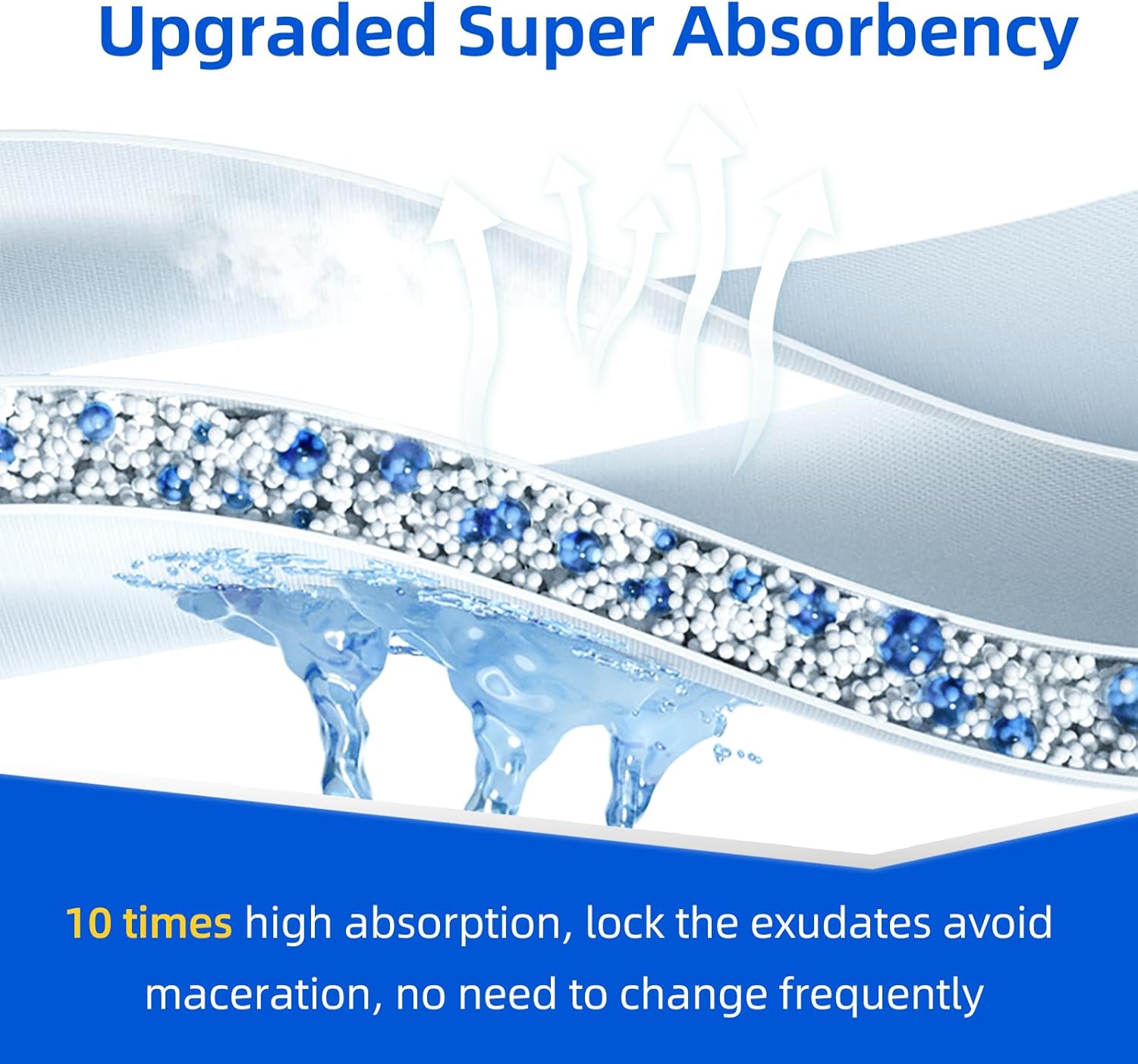 - 【High Absorbency, Promote Healing】The silicone bandages consists of 5 layers: a PU film, a fluffy SAF super absorbent core, a non-woven layer, a very soft thick pad, and an anti-allergic silicone layer for wound contact. The waterproof bandages adheres to the surface of the wound, absorbs and locks in exudate, provides a sterile, moist wound environment, and accelerates the healing process.