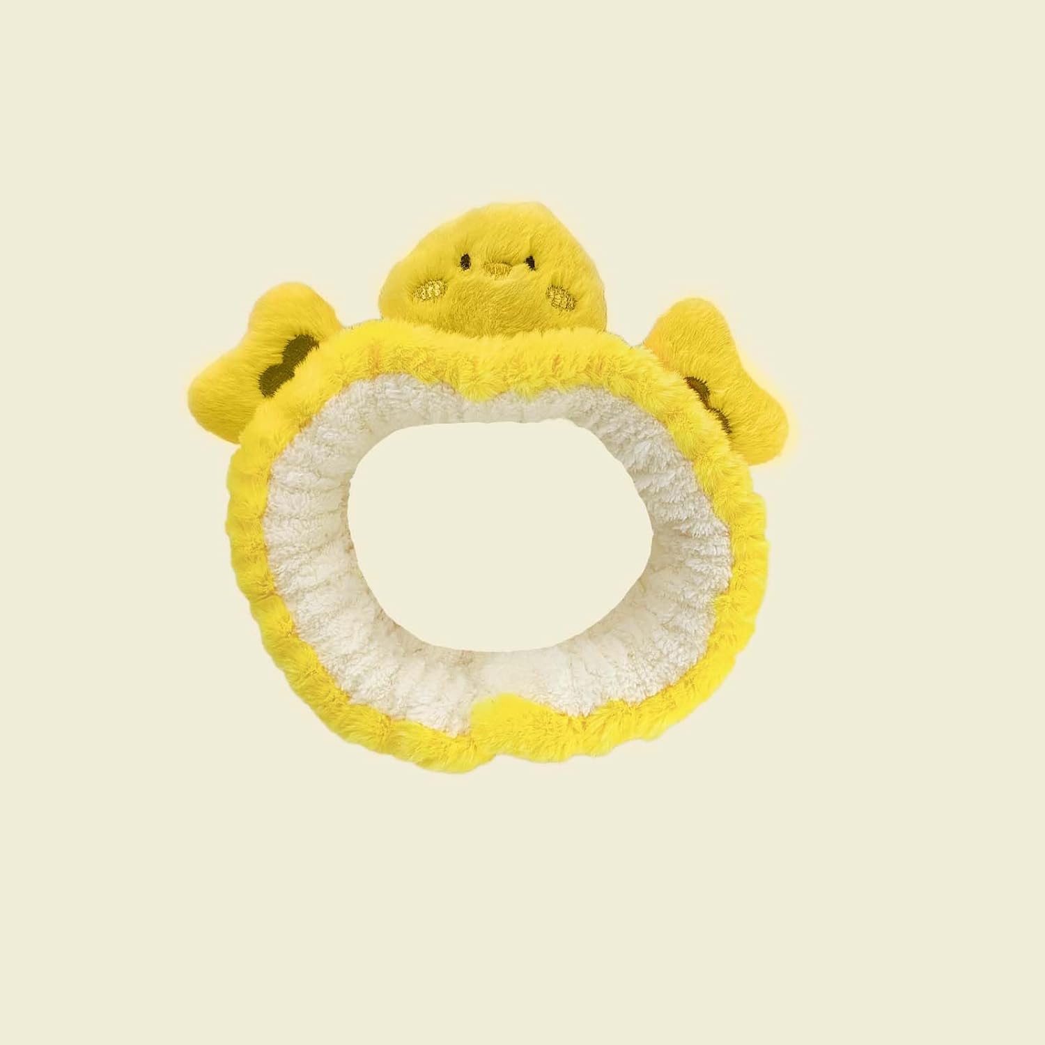 Kawaii Spa Headband - Cute Duck Towel Headband for Women's Skin Care, Makeup & Wash - Soft Microfiber Coral Fleece (Yellow, Duck)