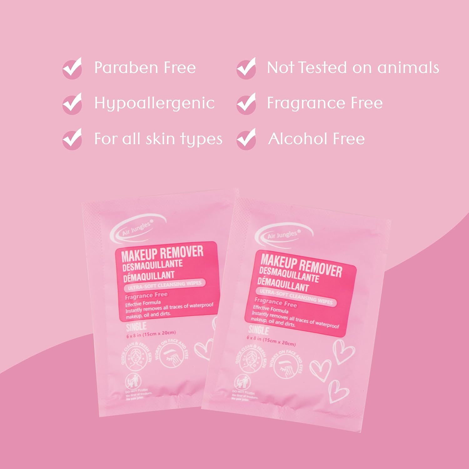 Air Jungles Makeup Remover Wipes Singles 25 Count (Pack of 3), Extra Large 6" x 8", Fragrance-Free, Removes Makeup and Oil, Ultra-Soft Cleansing Wipes, Alcohol Free