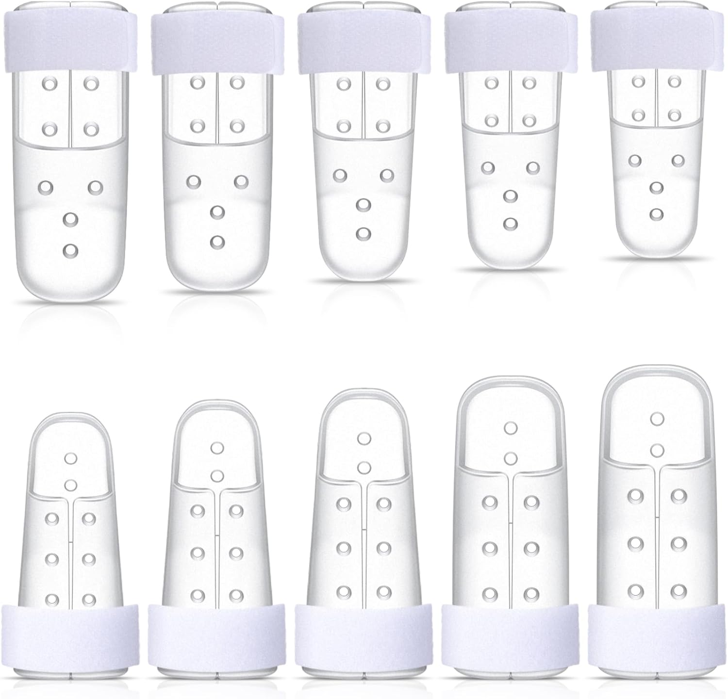BBTO 10 Pcs Mallet Finger Splint, 5 Sizes Finger Support Brace Stabilizer Straightener Plastic Fingertip Protectors Arthritis Knuckle Immobilization for Thumb Pinky Middle Index Ring(Transparent)