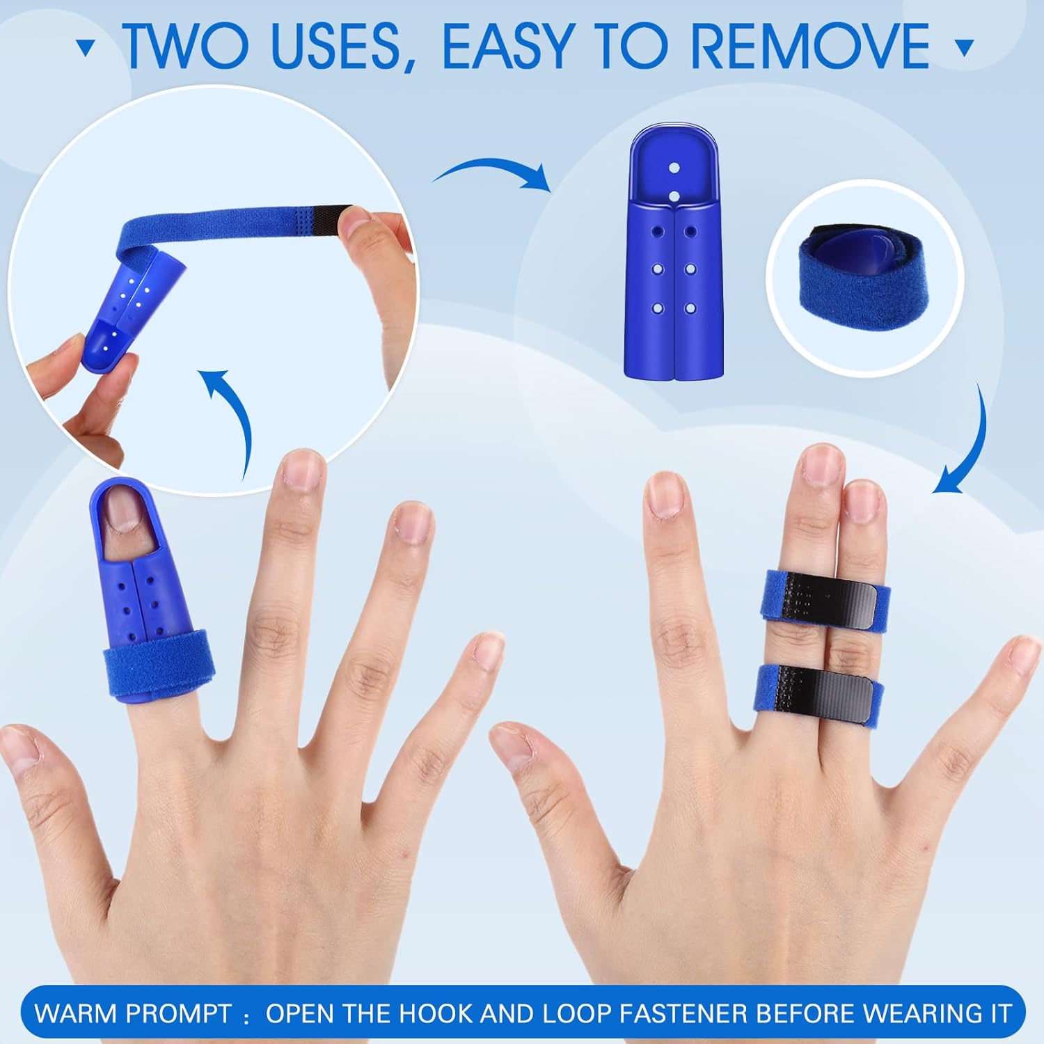 - Package details: you can receive 10 pieces mallet finger splint in the package, there are 5 different sizes to fit your thumb, pinky, index, middle, or ring fingers, you just need to combine the finger sleeve and finger splint by simply wearing, and then put on the finger splint over top and covering the tip of the finger
