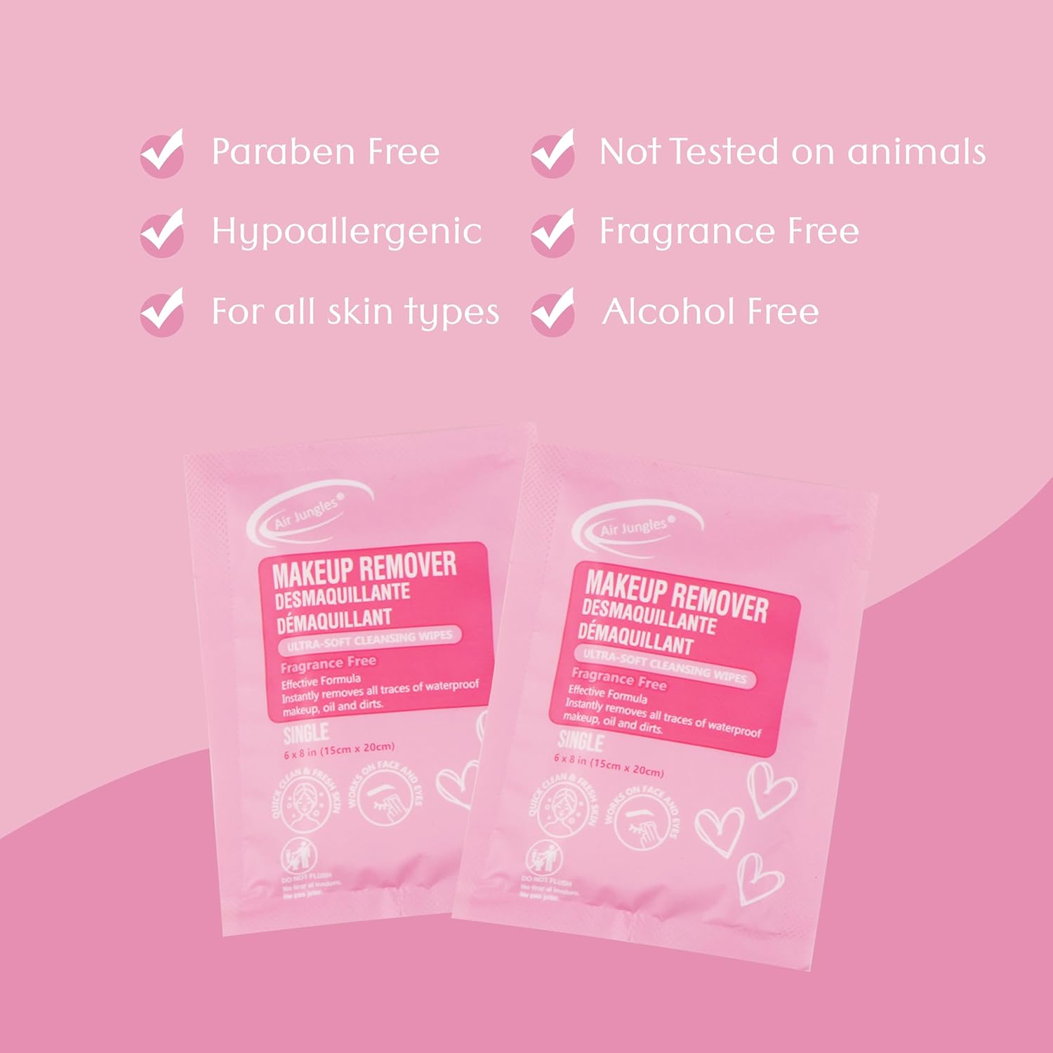 Air Jungles Makeup Remover Wipes Singles Wrapped 30 Pack, 750 Packs, Extra Large 6" x 8", Fragrance-Free, Removes Makeup and Oil, Ultra Soft Cleansing Wipes, Alcohol Free