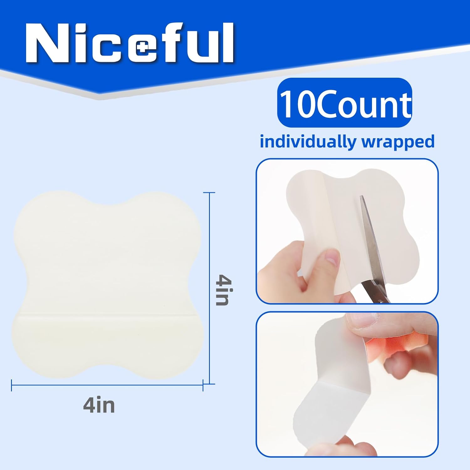 10 Count Hydrocolloid Bandages Ultra Thin 4"x4" - Hydrocolloid Gel Bandages Designed to Fit Joints, Wound Dressing for Abrasions, Blisters, Minor Exuding Wounds, Waterproof & Flexible