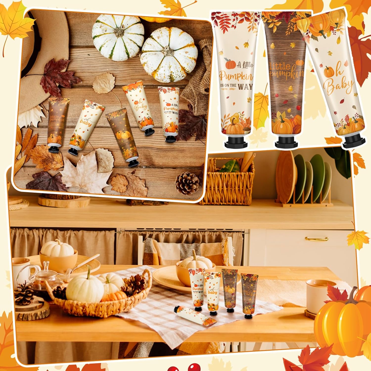 - Add Fragrance to Your Holiday: enjoy the various delightful scents in our Thanksgiving baby shower hand cream packaging; The fragrances include vanilla, pumpkin, cinnamon, cream each of which can make you feel refreshed and invigorated; Various fragrances represent each holiday element, making baby shower parties full of joy and unforgettable memories